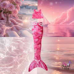 Laat je schitteren met de Yuna Zeemeerminset! Met de prachtige levendige roze schubbenprint is Yuna een droom die uitkomt! Deze lichtgewicht zeemeerminset is net zo comfortabel als je favoriete zwemkleding.